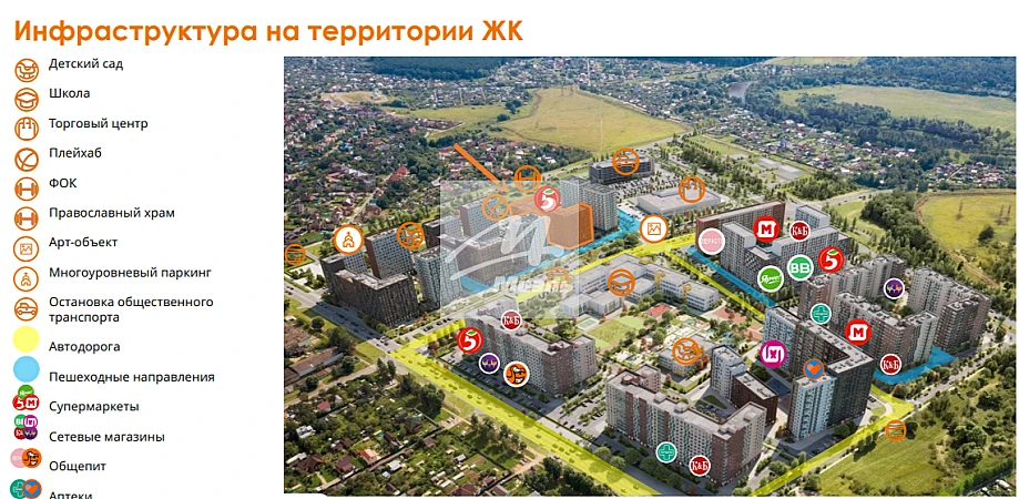 - Рядом расположено 1 500 парковочных мест, 2 остановки общественного транспорта;
