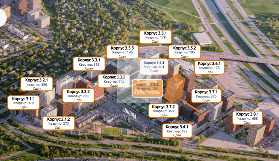 - В радиусе 300 м: 2 297 кв-р. Всего в ЖК: более 5 000 кв-р;