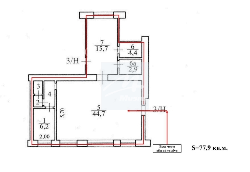 - Общая площадь - 77,3 м2.