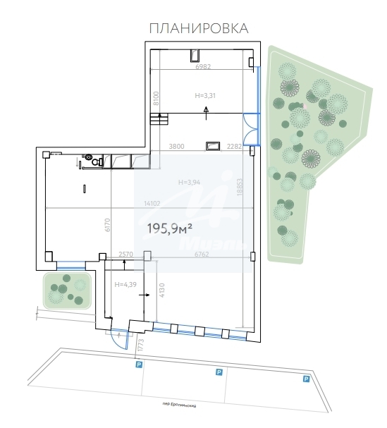- Высота потолков - 3,9 м.