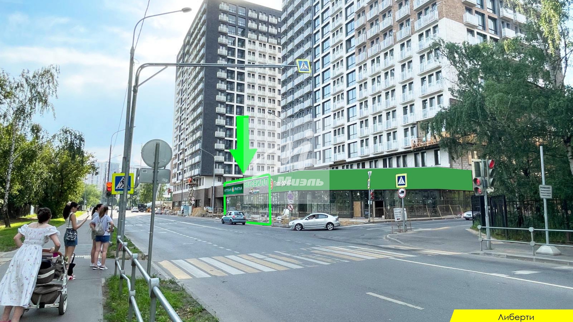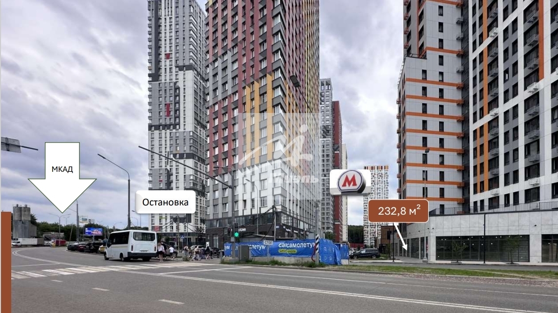 • Помещение в стилобате напротив бизнес -центра и пешеходного перехода к нему, в прямой видимости от остановки, на выезде из района;