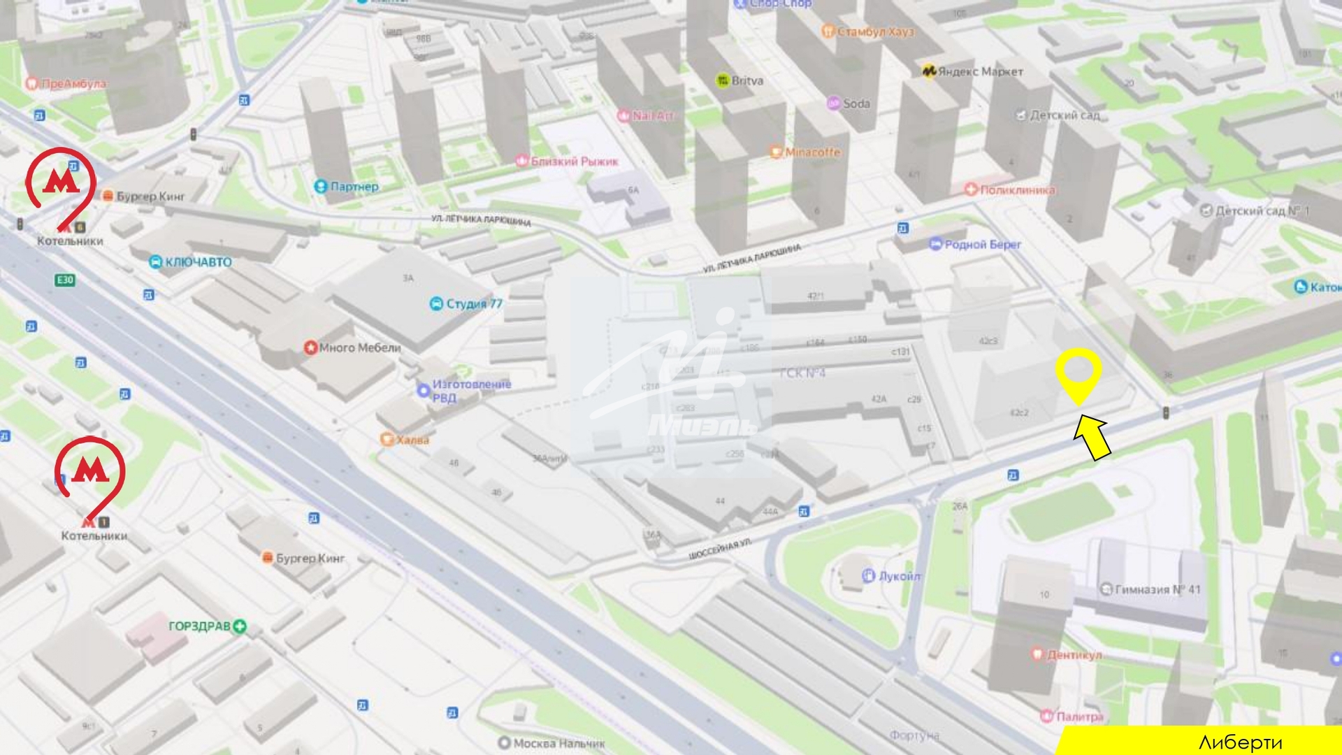 - Помещение расположено в квартале с апартаментами «Спутник».
