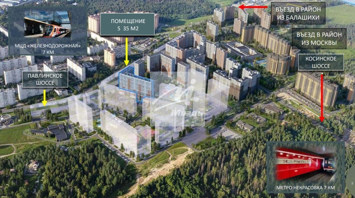 - 13 км от МКАД в большей части заселенном плотном жилом массиве комфорт-класса разных лет застройки. - 15 минут транспортом от метро Некрасовка или МЦД Железнодорожная, выезд в Москву по современной трассе М12.