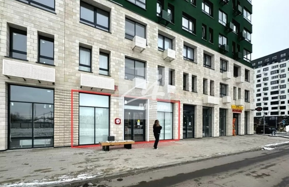 - Помещение расположено внутри крупного жилого массива, на перекрестке между корпусами. Зона сочетания пешеходного и автомобильного трафика.