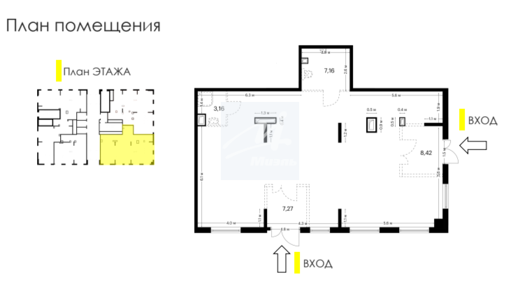 - Угловое помещение на въезде в жилой комплекс с двумя входами.