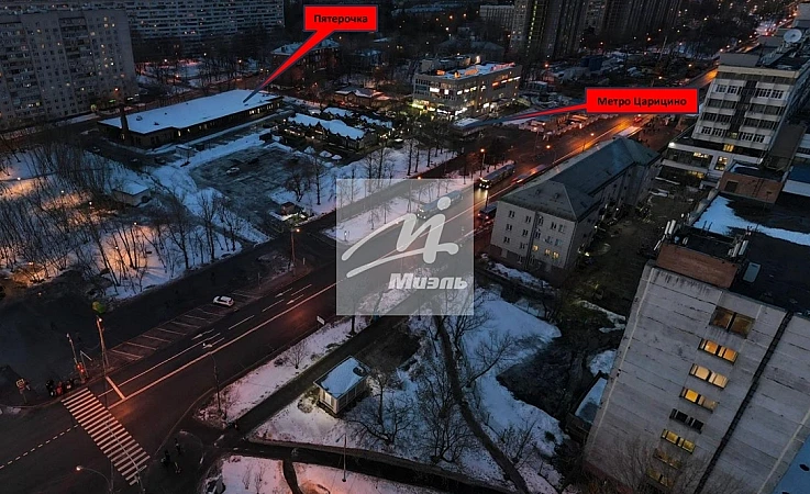 - Помещение с супермаркетом «Пятёрочка» расположено на первом этаже районного торгового центра, стоящего на пересечении активных пешеходных потоков, в 30м. от входа в ст. м. Царицыно, в 50м. от конечной остановки общественного транспорта и в 580м. от ст. МЦД Царицыно.