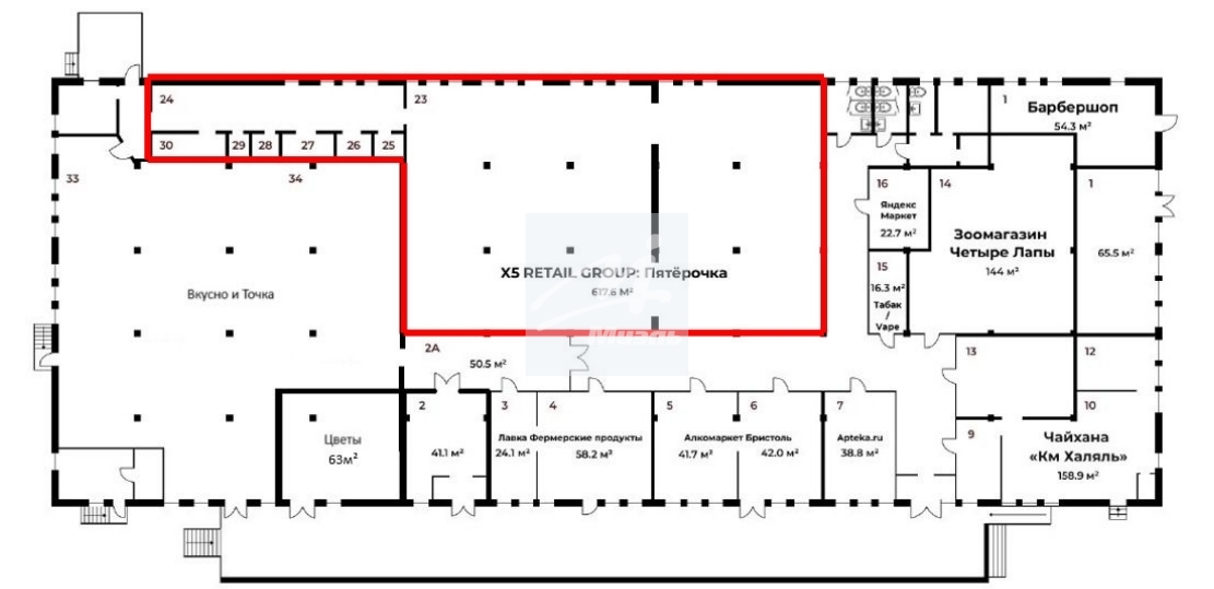 - Арендатор: супермаркет Пятерочка.