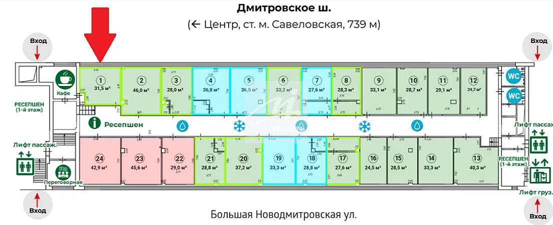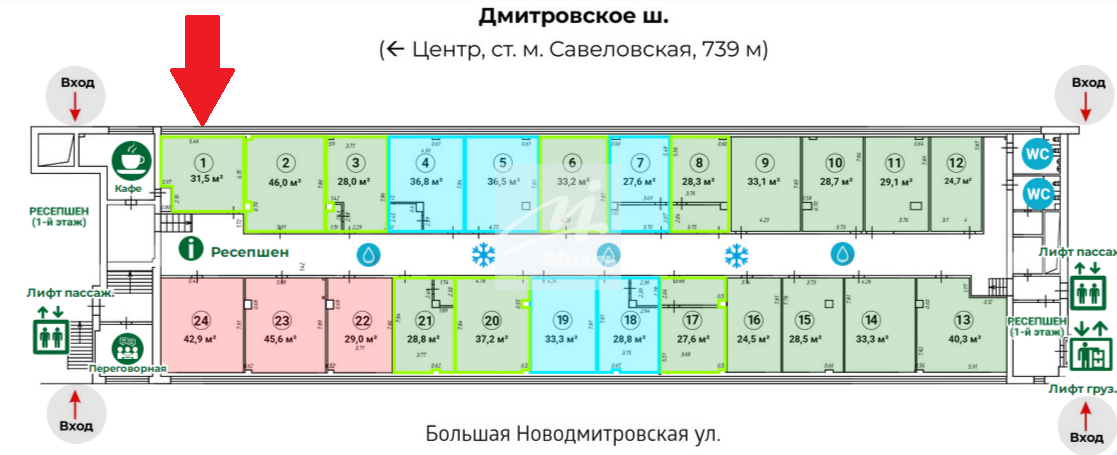 Продажа готового арендного бизнеса/офисного помещения в Бизнес Центре по адресу: г.Москва, м. Савеловская, р-н Бутырский, Большая Новодмитровская, 23, стр. 2.