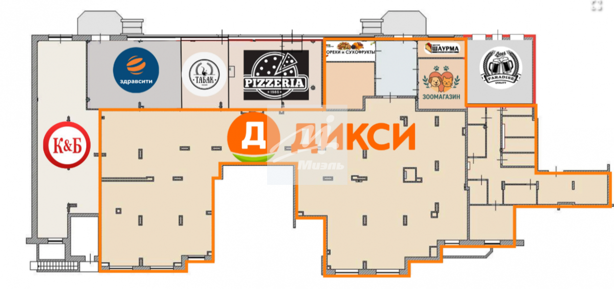 - Помещение на одной торговой линии с Дикси, ЗДРАВСИТИ, КБ, пиццерия, пивной магазин.