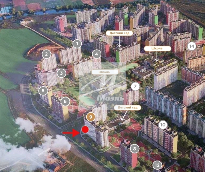 - Помещение находится в крупном жилом массиве из 26 домов по 18 этажей.