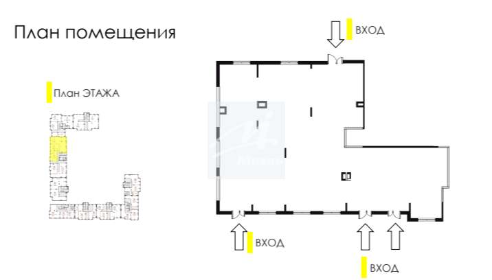 - Помещение с тремя входами.