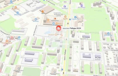- Здание расположено на первой линии проспекта Победы, вблизи плотного жилого массива.