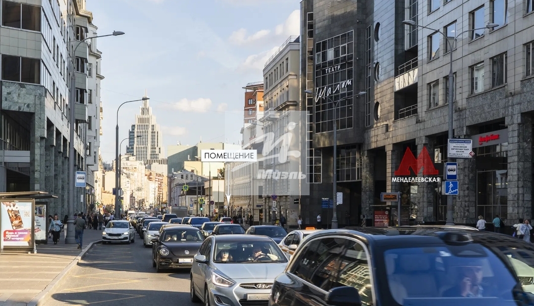 - Помещение в 100 метрах от метро «Менделеевская», в окружении плотной жилой застройки, административных зданий, бизнес-центров и вузов.