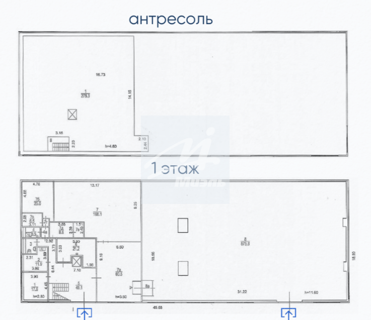 - Материал перекрытий: Ж/б (антресоль – металл).