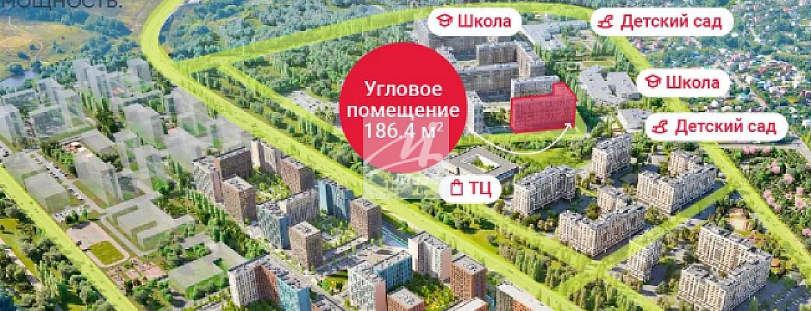 - Угловое помещение на пересечении основных пешеходных троп квартала.