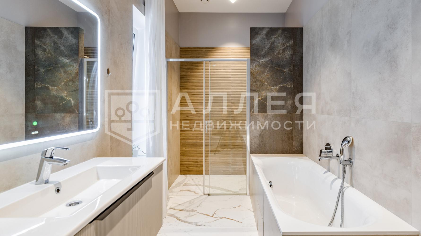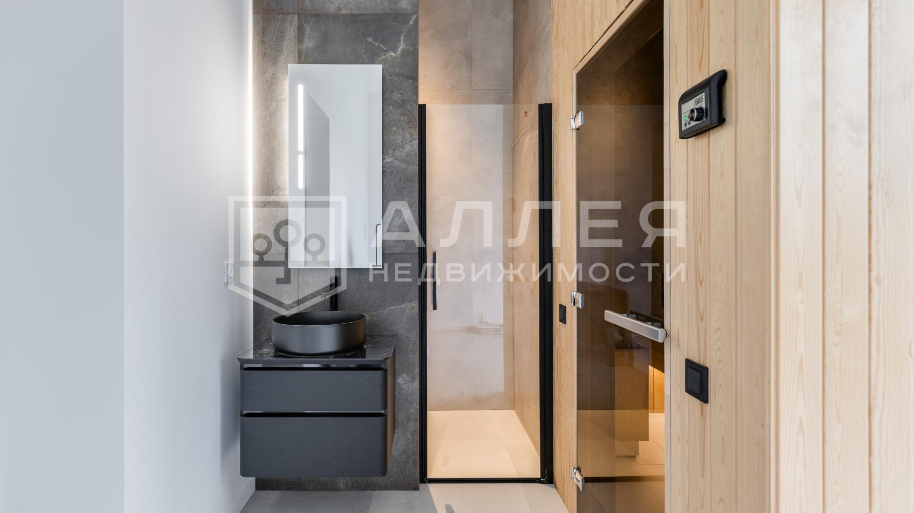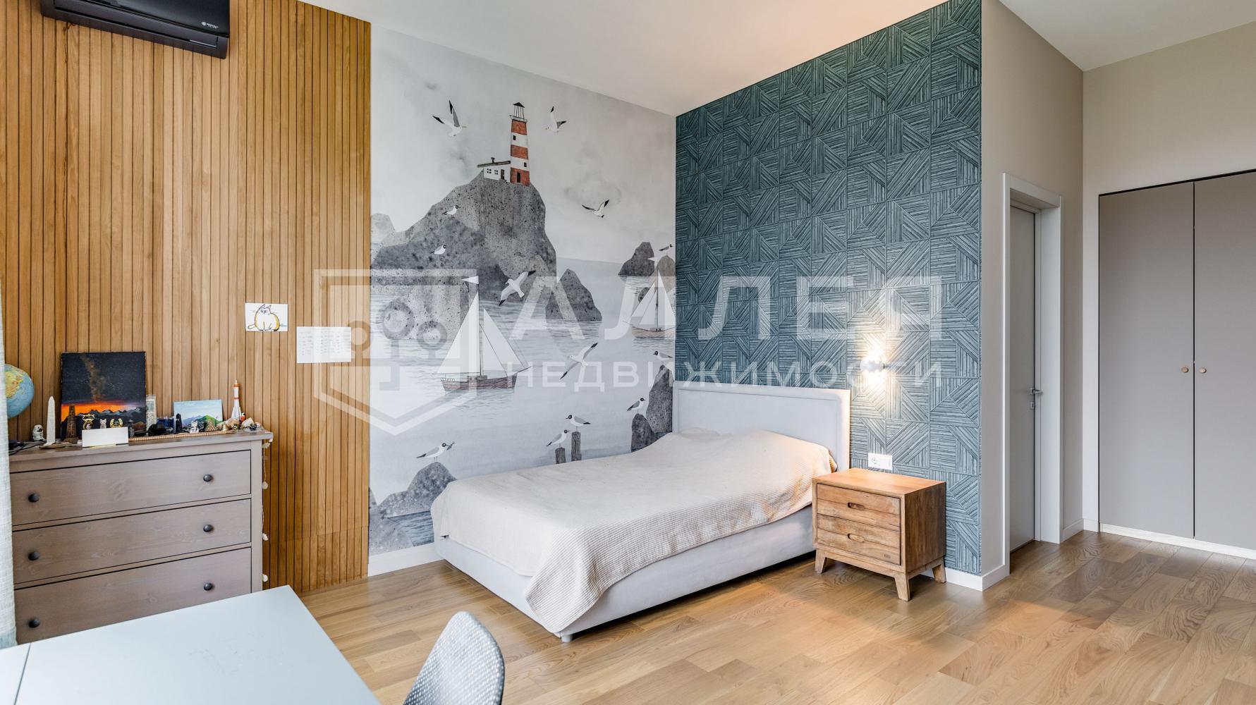 Современный дом с ремонтом, полностью меблирован и готов к проживанию. В доме просторные комнаты, высокие потолки, есть спальня на первом этаже. Сделан дизайнерский ремонт в светлых тонах, отделка выполнена из качественных материалов. Все спальни со своими санузлами. Из комнат второго этаже прекрасный вид лес. Есть гараж на 2 автомобиля и большая парковка.