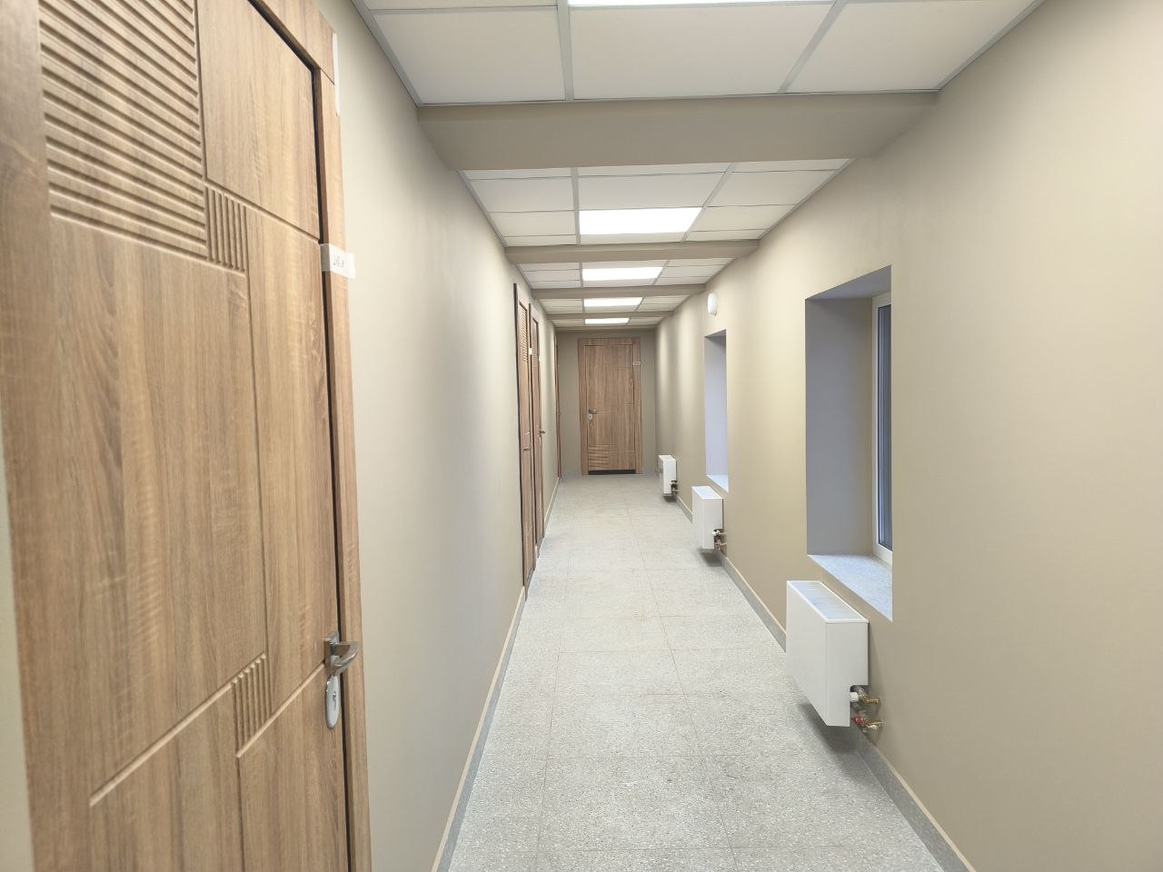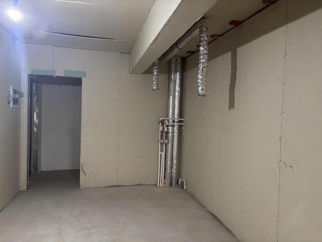 Помещение под чистовую отделку. Установлены: качественная входная дверь, вытяжная вентиляция, радиатор отопления, электросчетчик, автомат на 5 кВт на помещение, выходы хв/гв.