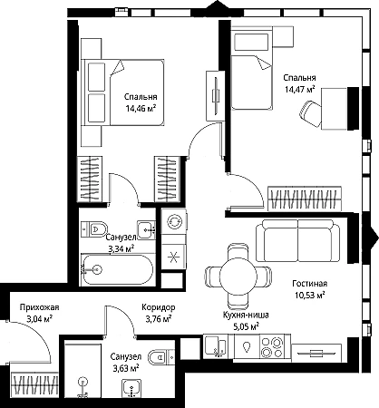 Купить 2к квартиру 58 м² в ЖК JOIS (Джойс)
