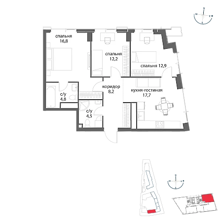Купить 3к квартиру 77 м² в ЖК Событие