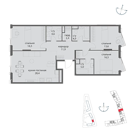 Купить 3к квартиру 103 м² в ЖК Событие