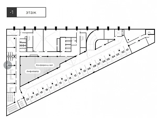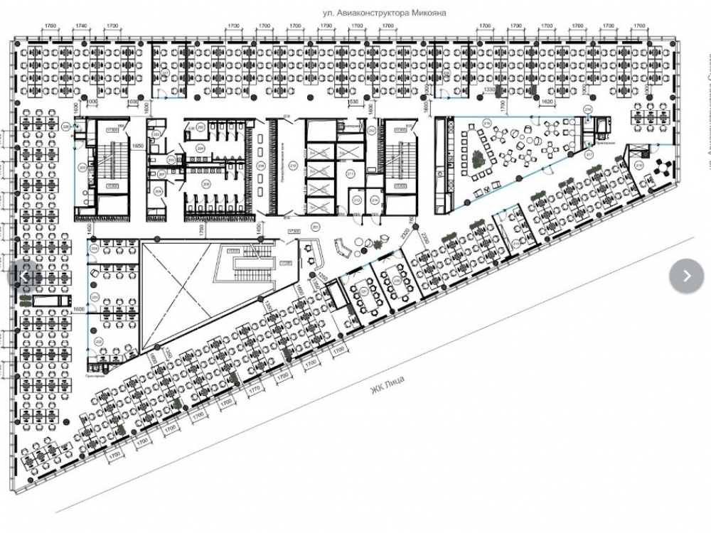 . Общая площадь 9840м2: пять наземных этажей и парковка. Возможно размещение до 1450 сотрудников.