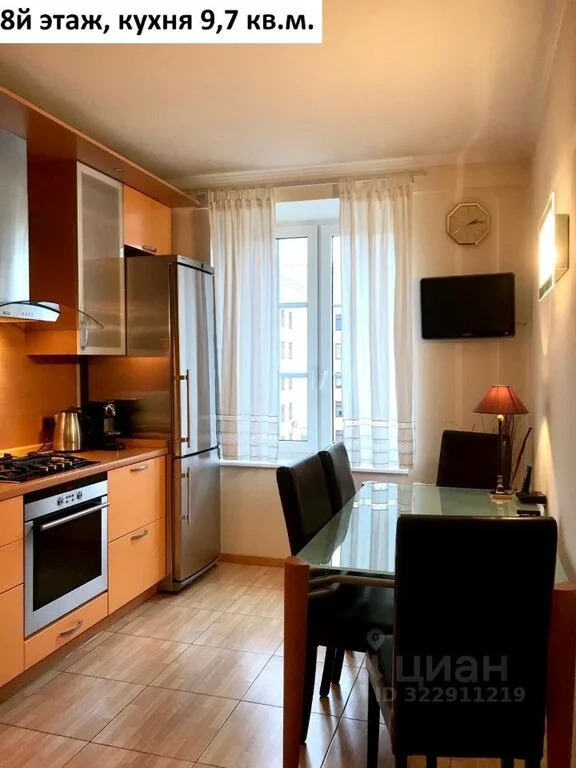 Площадь 8го этажа квартиры 61 кв.м. с учетом балкона. Комната 23 кв.м. (диван, настенные полки, столик, зеркало, люстра) с выходом на балкон 1,8 кв.м. и лестницей на чердачный этаж, спальня 14,4 кв.м. (кровать, кондиционер, шкаф, комод, люстра) кухня 9,7 кв.м. (кухонный гарнитур, плита холодильник, телевизор, лампа настенная, стол, стулья), коридор 7 кв.м. (встроенный шкаф-купе), душевая 4,1 кв.м. (душевая кабинка, зеркало, раковина).