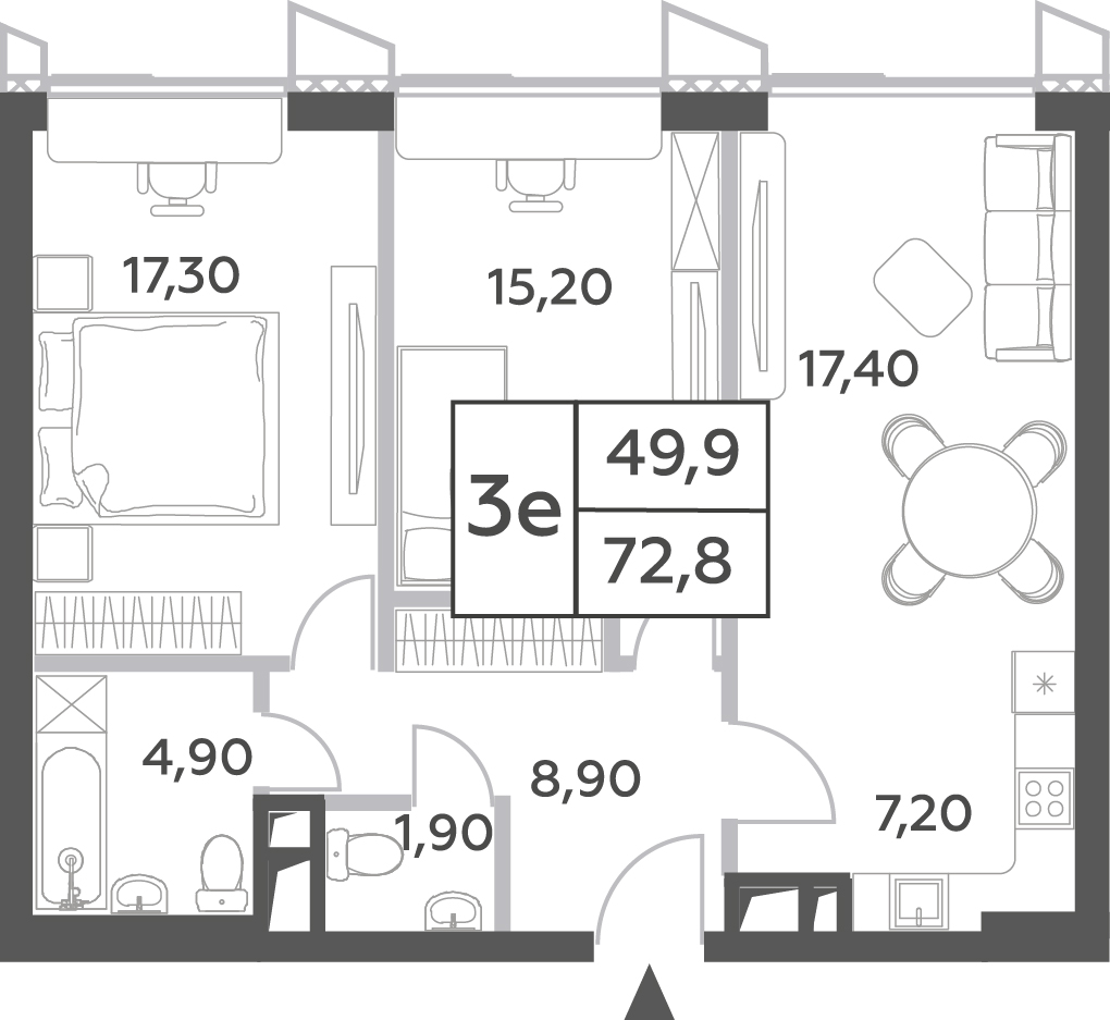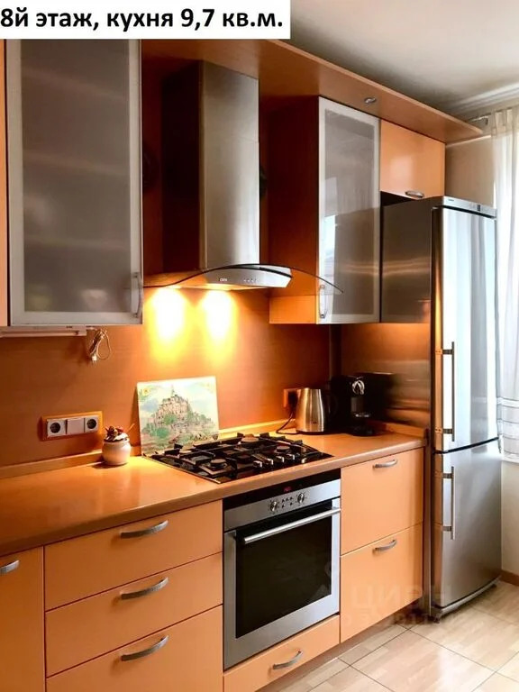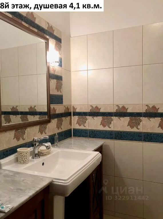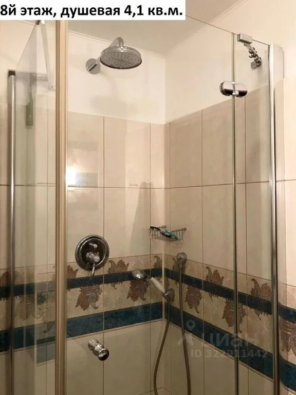 Площадь 8го этажа квартиры 61 кв.м. с учетом балкона. Комната 23 кв.м. (диван, настенные полки, столик, зеркало, люстра) с выходом на балкон 1,8 кв.м. и лестницей на чердачный этаж, спальня 14,4 кв.м. (кровать, кондиционер, шкаф, комод, люстра) кухня 9,7 кв.м. (кухонный гарнитур, плита холодильник, телевизор, лампа настенная, стол, стулья), коридор 7 кв.м. (встроенный шкаф-купе), душевая 4,1 кв.м. (душевая кабинка, зеркало, раковина).