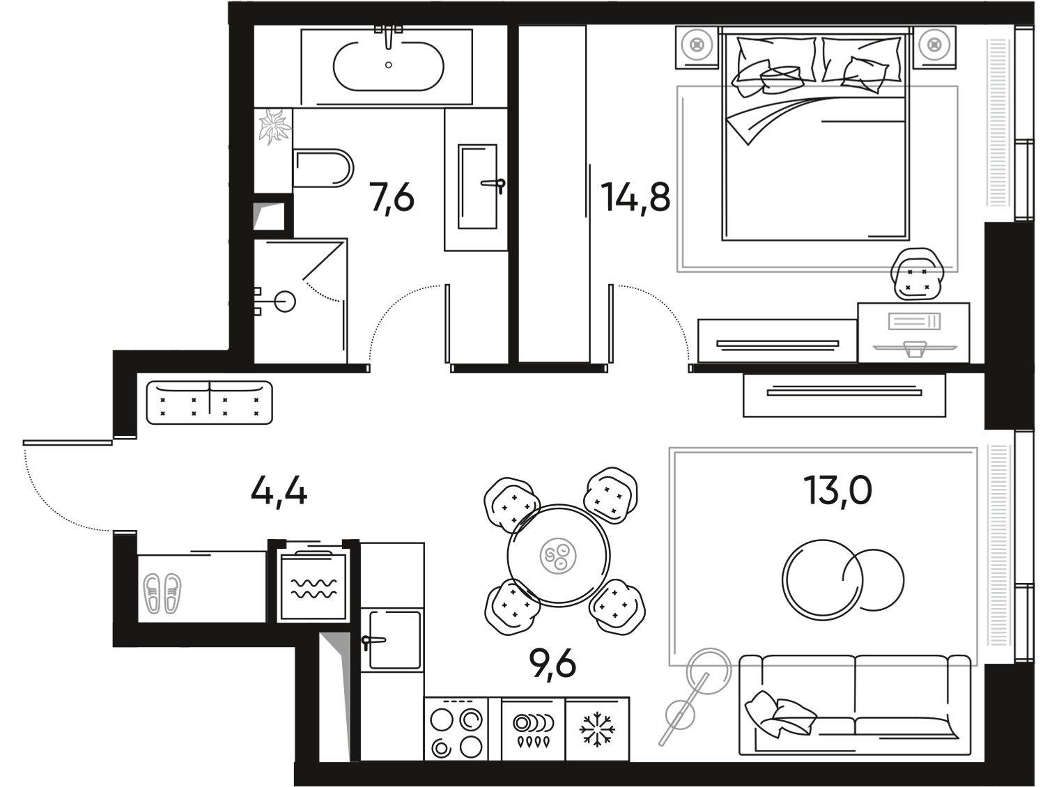 Зеленый район с развитой инфраструктурой. Окна во двор, бесплатная крытая парковка для велосипедов во дворе, рядом с домом бассейн, спорт центр, каток, парк, магазины, сбербанк, школа. Тихо, зелено, благоустроенно.