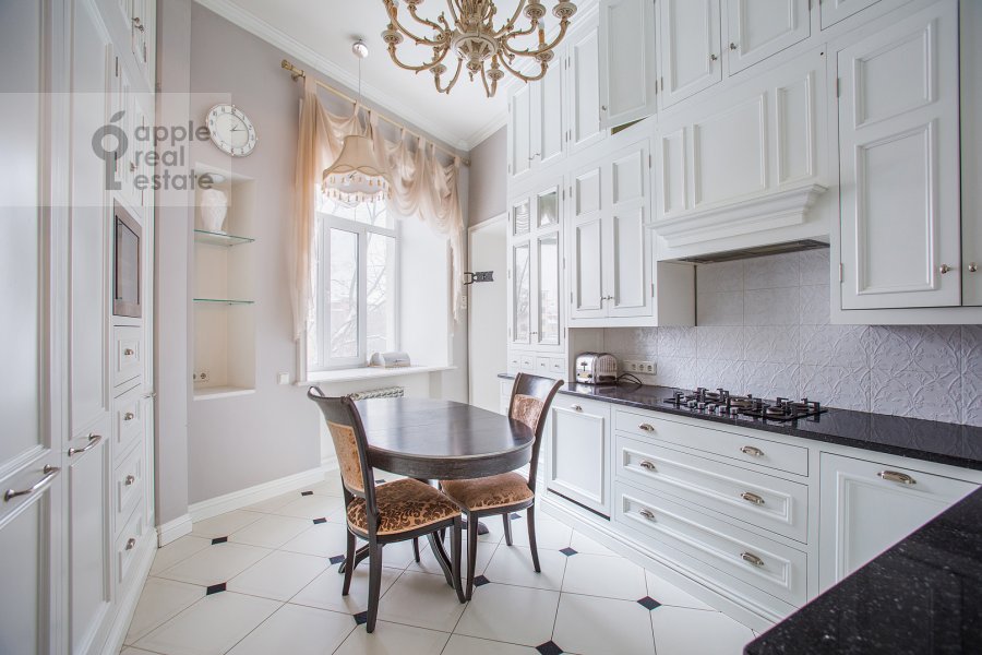 Доходный дом построен архитектором С. М. Гончаровым в 1915 году. Ремонт квартиры выполнен в классическом стиле из натуральных материалов, высокие потолки украшены лепниной. Функциональная планировка: просторная гостиная; основная спальня с гардеробной и ванной комнатами; кабинет с уютным балконом; кухня с необходимой встроенной техникой; две спальни со своей ванной комнатой; постирочная; гостевой санузел. Установлены теплые полы и система кондиционирования. Закрытый двор, на территории организован паркинг. Рядом школа и детский сад, детская поликлиника, дом творчества, фитнес-клуб, театры. Быстрый выезд на Садовое кольцо.