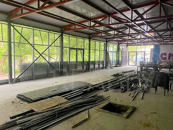 🔹 Состояние: Высота потолков — 4 м • Большие витринные окна • 2 мокрые точки