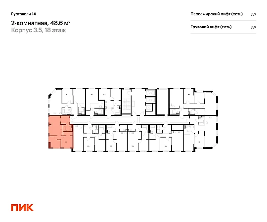 Продаётся 2-комн.квартира площадью 48.60 кв.м на 18 этаже 21 этажного дома (Корпус 3.5, секция 1) проекта ПИК Руставели 14. Светлый просторный подъезд на уровне земли, функциональная планировка, большие окна, с отделкой.