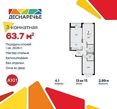 Купить 2к квартиру 48 м² в ЖК Руставели 14