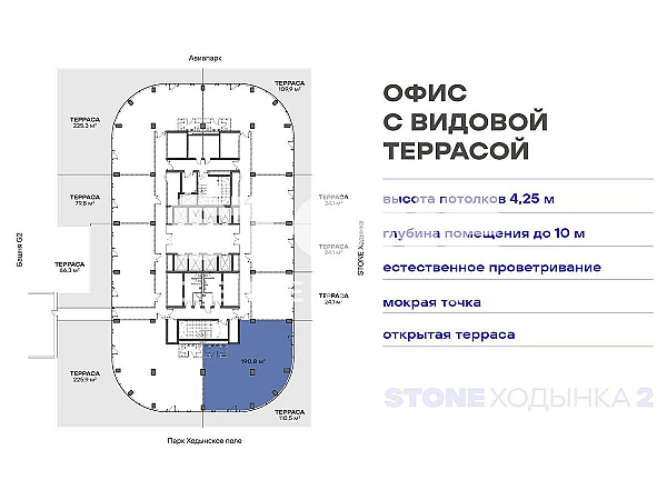 Уникальный формат коммерческой недвижимости - офисы с террасами от 80 кв. м в составе премиального офисного квартала STONE Ходынка 2 с прямым выходом в парк Ходынское поле.