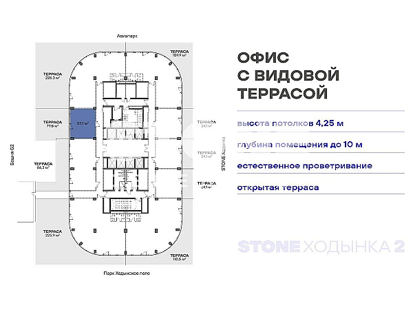 Уникальный формат коммерческой недвижимости - офисы с террасами от 80 кв. м в составе премиального офисного квартала STONE Ходынка 2 с прямым выходом в парк Ходынское поле.