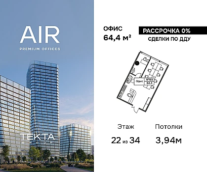 В реализации - офис в составе премиального офисного квартала на Ходынке напрямую от застройщика STONE, лидера офисного рынка.