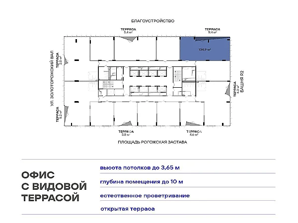 Видовые террасы и благоустроенная территория бизнес-центра предлагают не только удобные рабочие пространства, но и зоны для отдыха, где сотрудники смогут наслаждаться перерывами на свежем воздухе.