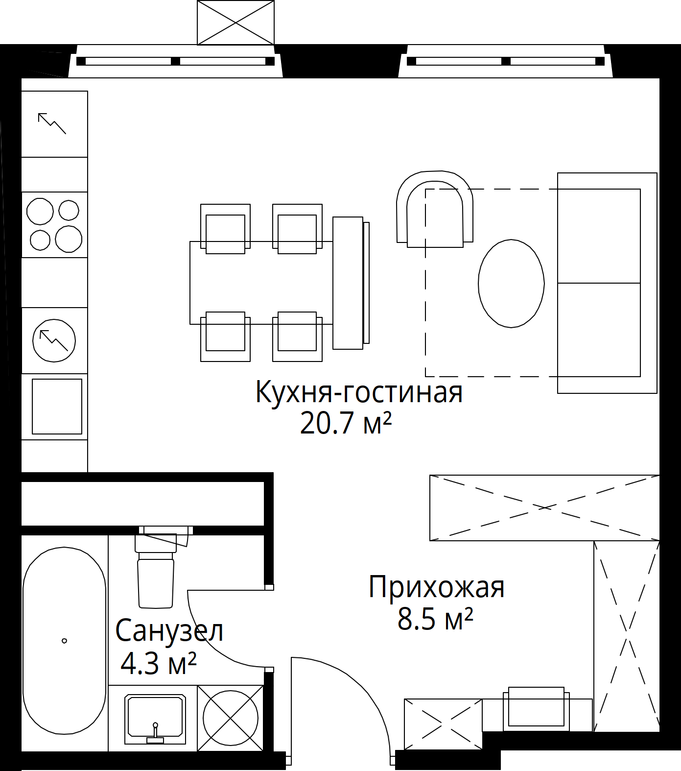 Купить 2к квартиру 31 м² в ЖК Аникеевский