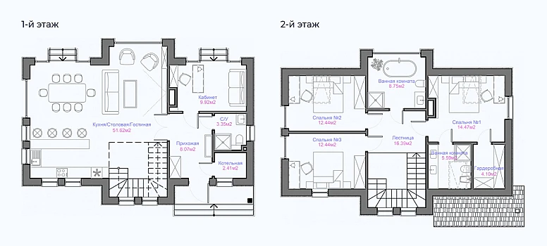 2 этаж: 3 спальни, гардероб, 2 с/у