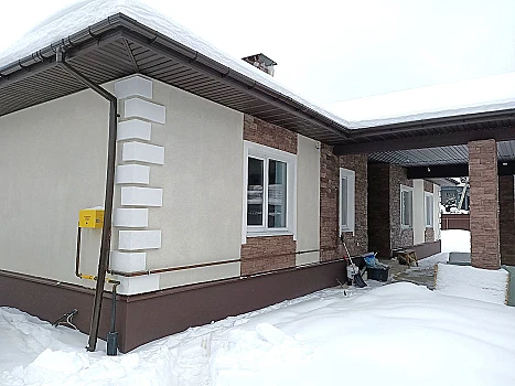 - Материалы: фундамент железобетонный, керамические блоки, железобетонные перекрытия, окна Rehau, кровля BRAAS