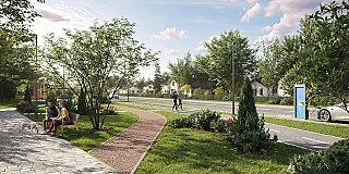 - Детские площадки, зона семейных пикников, уютные беседки с лежаками, пергола для уличных тренировок и йоги, workout площадка, зона ярмарок, площадка для выгула собак;
