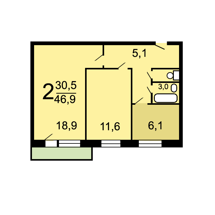 Купить 2к квартиру 47 м²