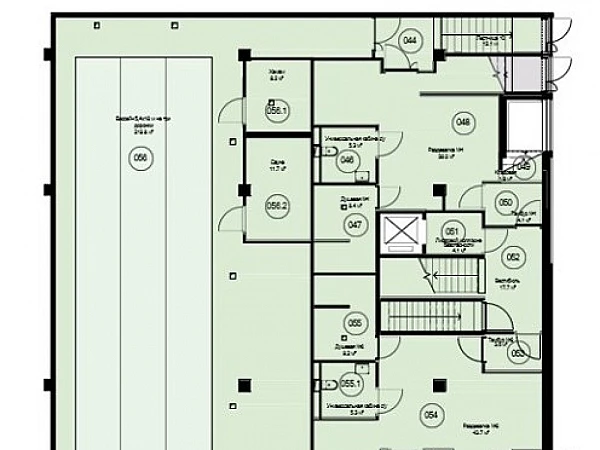 На продажу представлено помещение с назначением ФОК. Оздоровительный комплекс с бассейном, встроенный в стилобатную часть ЖК Либерти. Предусмотрены помещения под сан.узел, душевые, раздевалки, бассейн 5.4 х 18 на три дорожки, хамам, сауна, тренажерный зал и другое.
