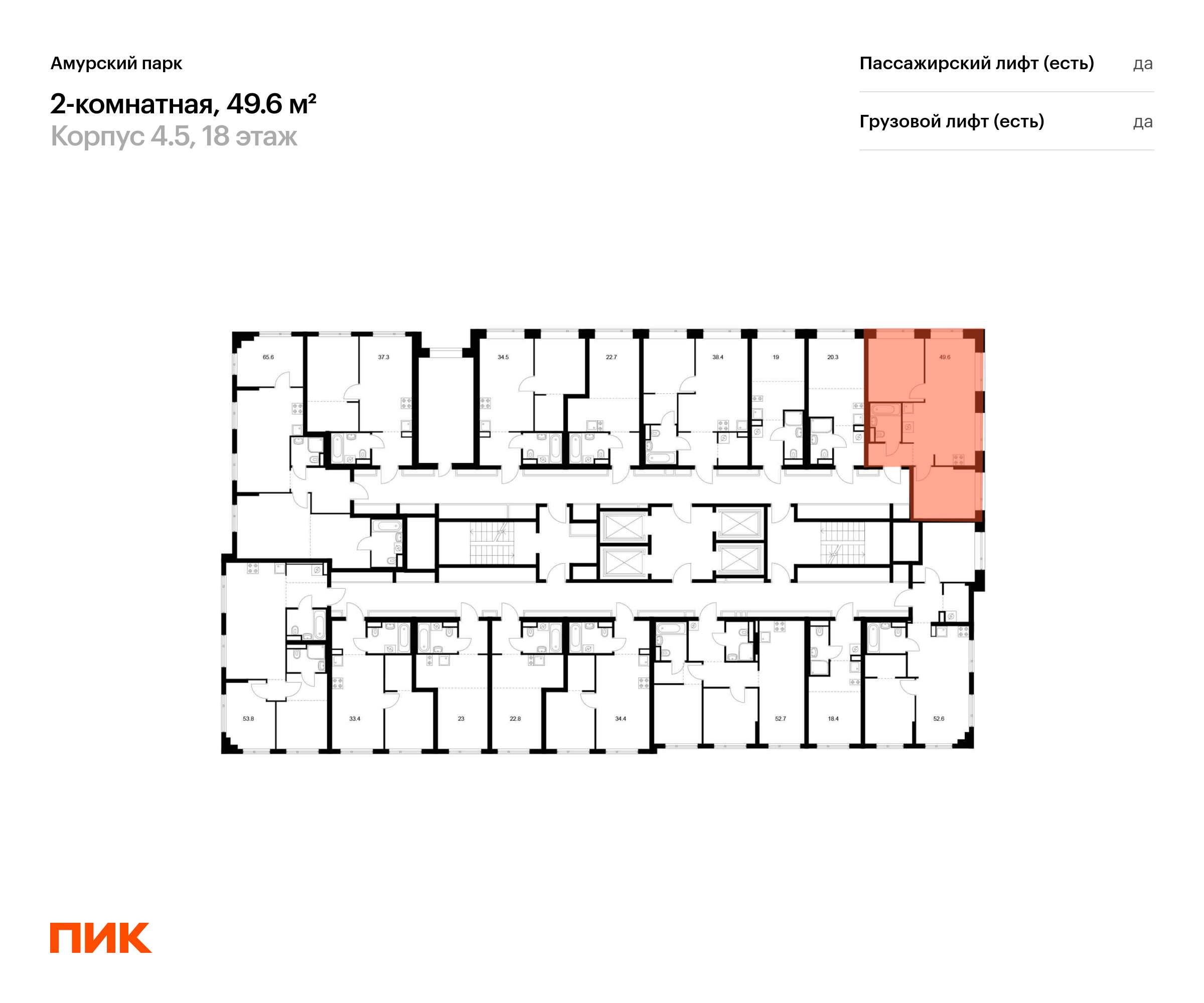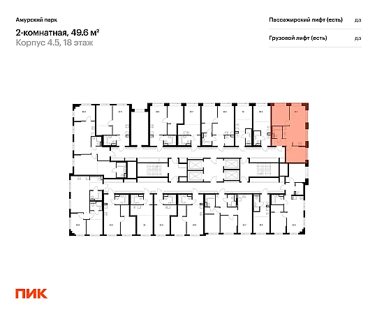 Продаётся 2-комн.квартира площадью 49.60 кв.м на 18 этаже 27 этажного дома (Корпус 4.5, секция 6) проекта ПИК Амурский парк. Светлый просторный подъезд на уровне земли, функциональная планировка, большие окна, с отделкой.