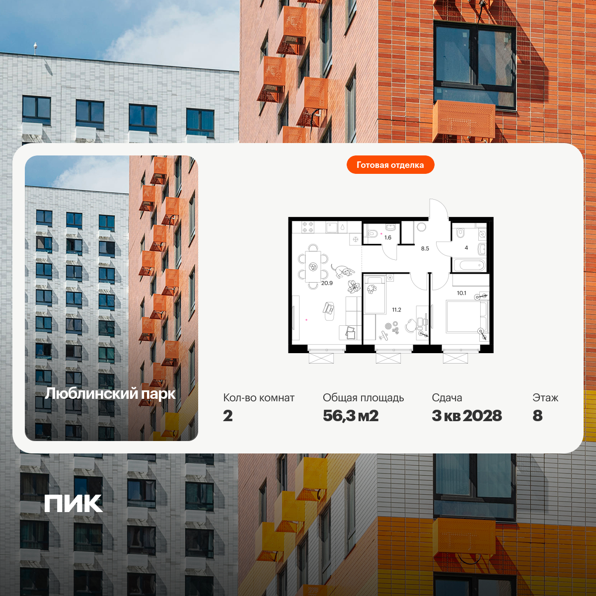 Купить 3к квартиру 56 м² в ЖК Кавказский бульвар 51