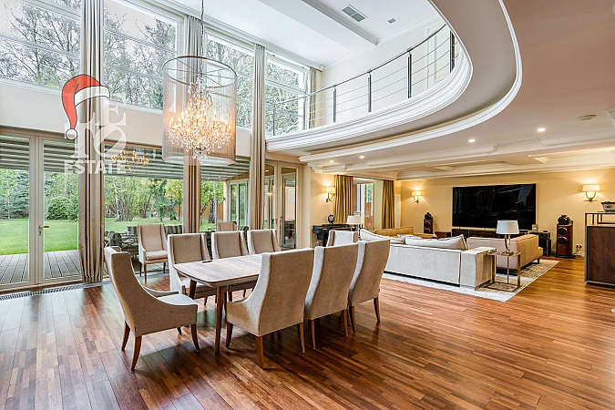Установлена вся необходимая мебель и бытовая техника от ведущих производителей. Все коммуникации в доме центральные, что гарантирует бесперебойное и комфортное проживание. Для удобства проживающих предусмотрена квартира для персонала, постирочная, гардеробная и комната для охраны.