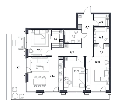Стоимость квартиры со скидкой 8% при 100% оплате 61548000 руб.