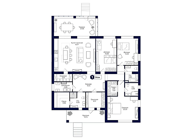 Коттедж «Уют» представляет собой идеальное сочетание комфорта и рациональной планировки. Многие выбирают одноэтажный коттедж из-за удобства проживания: в нём нет лестницы, что позволяет использовать больше полезной площади. Мы это подтверждаем!