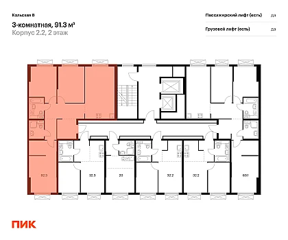 Продается 2-к. квартира номер 13 общей площадью 85.8 кв.м. на 3-м этаже 9 этажного дома, корпус UNIQUE (премиум-класс). Без отделки.