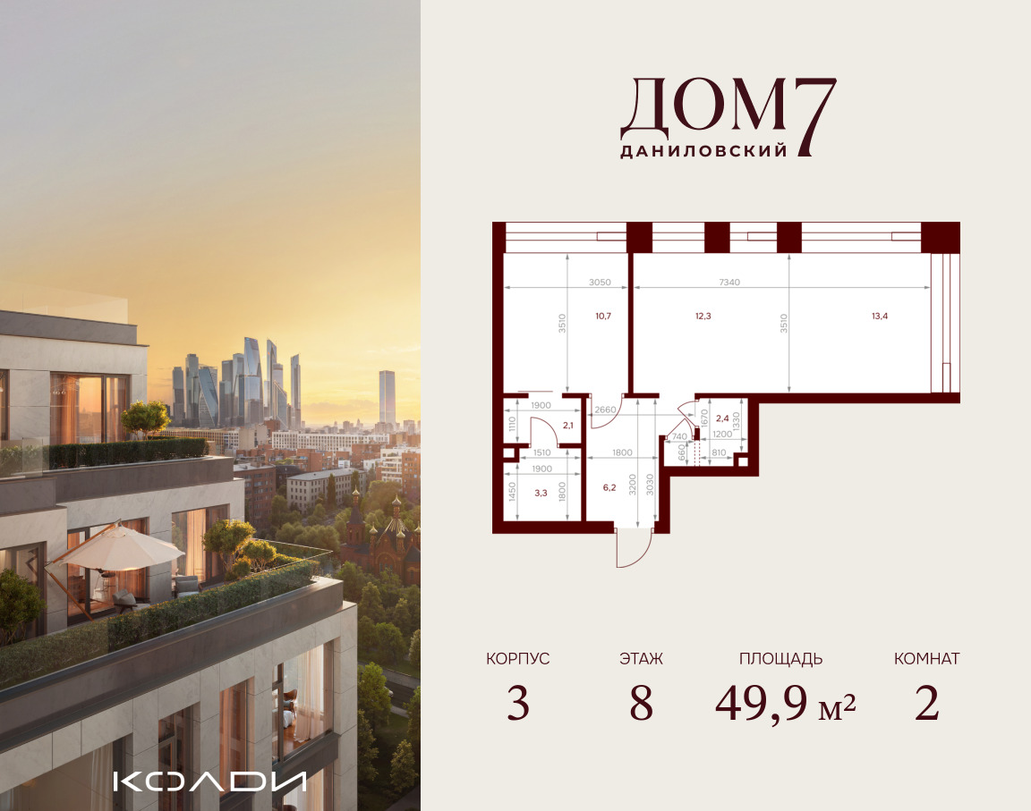 Купить 2к квартиру 49 м² в ЖК Дом 7 Даниловский