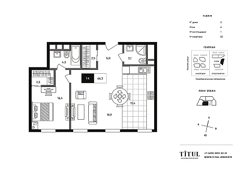 Продается 3-к квартира общей площадью 61.60 кв.м на 10 этаже в жилом квартале премиум-класса "Дом 7 Даниловский".